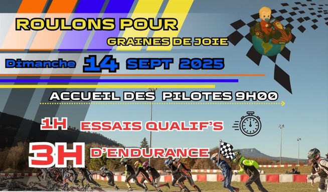 La 9ème édition de Roulons pour Graines de Joie aura lieu dimanche 14 septembre sur le circuit Brignoles Karting Loisir (BKL). Le format de la course reste le même : 1h d'essais chronométrés et 3h d'endurance. Tous les bénéfices seront destinés au projet du soutien scolaire à Marseille. Infos & Réservations : 06.89.27.27.78 (Régis ou Romane) Ou directement via Helloasso en CLIQUANT ICI