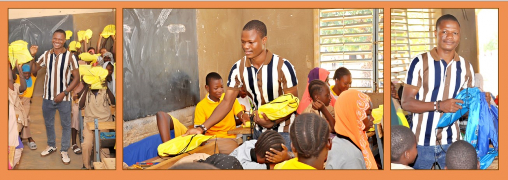Une distribution pleine de sens à GuigmtengaLa distribution de kits cartables au Collège et Lycée de Guigmtenga a revêtu une dimension toute particulière avec la présence d’Issaka Zangré, ancien élève repéré par Graines de Joie dès le CP, puis soutenu à partir de l’obtention de son baccalauréat. Aujourd’hui en 7ème année de médecine, Issaka est revenu partager son expérience et rappeler, avec émotion, que grâce à l’éducation et au soutien, tout devient possible.
