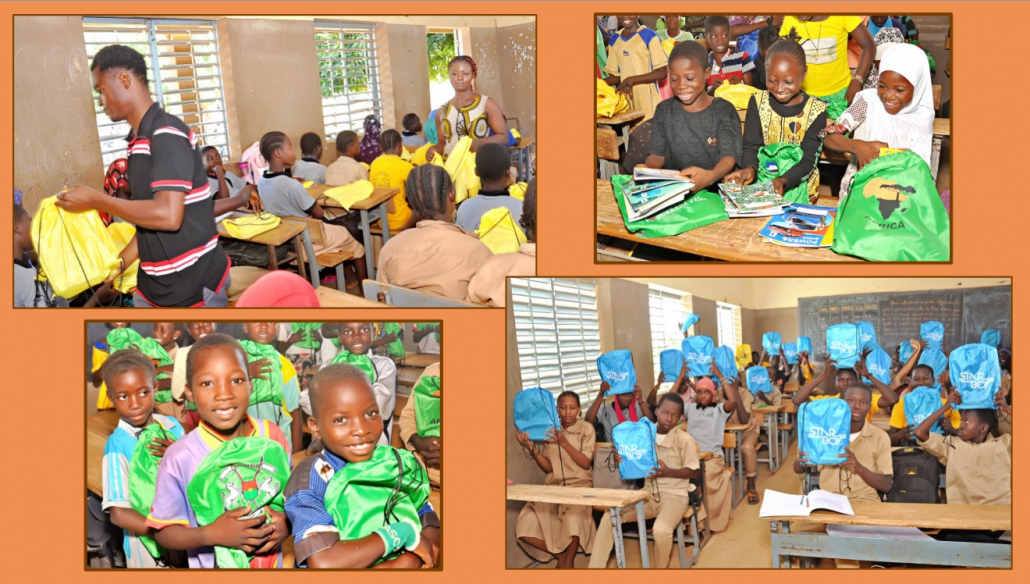 Opération "Kits cartables" – Bilan 2025Cette opération a pour objectif de collecter des fonds afin d'offrir à chaque élève le matériel pédagogique nécessaire pour bien démarrer l'année scolaire. L'édition 2025 a remporté un vif succès ! Grâce à la générosité de nos donateurs, 7 250 € ont été récoltés, permettant de financer la rentrée de 2 209 élèves du village de Guigmtenga :