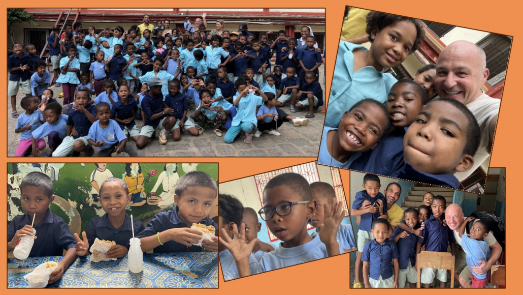 MADAGASCARChef de Cabine Principal à Air France et membre actif de Graines de Joie, Mickaël Legrand, accompagné de 3 collègues hôtesses et steward, a eu le plaisir, au cours d’une escale à Madagascar, mi-janvier, de rencontrer les sœurs et les enfants de l’orphelinat Les Paulins et de participer à un goûter offert par l’association. Voici ses impressions ; « Nous avons reçu un accueil très chaleureux et plein de sourires. Les enfants nous avaient préparé un spectacle de danses et de chants, avec entrain et tout leur cœur. Nous avons passé un agréable moment d’échange, de partage empli d’émotion et surtout de joie. Les enfants nous ont beaucoup remerciés pour le goûter qui leur a fait vraiment très plaisir. J’ai pu rencontrer des enfants parrainés, recevoir un cadeau à remettre à un parrain en France et offrir des jouets et vêtements apportés par des collègues de mon équipage. Je rentre en France avec un merveilleux souvenir et une forte envie de revenir lors d’une prochaine escale ». Mickaël Legrand